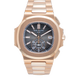 The Patek Philippe Nautilus Chronograph Rose Gold Brown Dial 5980R-001 combines luxury and functionality with its 40.5mm rose gold case and rich brown dial. Discontinued in 2024, this timepiece has become even more sought after by collectors. This timepiece features a chronograph function, highlighted by an easy-to-read sub-dial at 6...